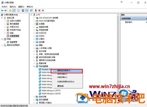 第三步、如果网卡驱动出现黄色感叹号,鼠标右键进行更新驱动程序,也可以通过一些驱动程序软件进行更新,如果网卡驱动被禁用,进行启用就可以,如下图所示: