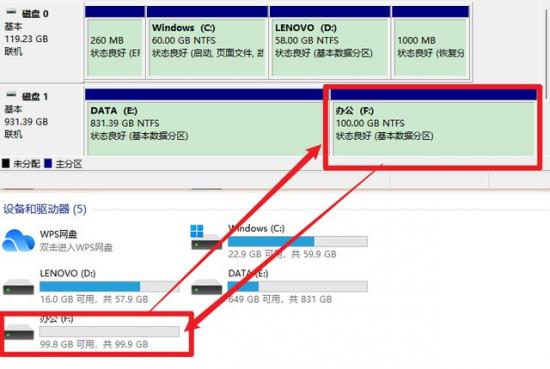比如要分区 磁盘1目前总尺寸为931GB,可用空间是749GB。