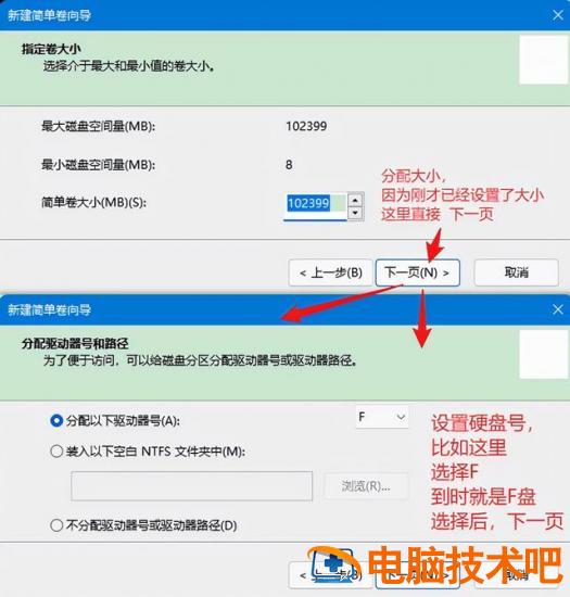 在这里,我们设置分区的大小,刚才是划分出100G所以这里直接下一步。