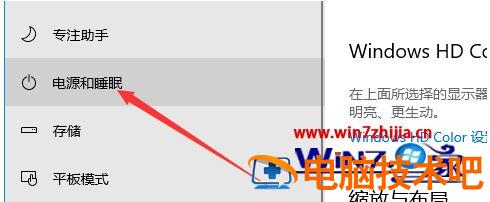 4、其次在新打开的界面中点击左边菜单中的电源和睡眠。