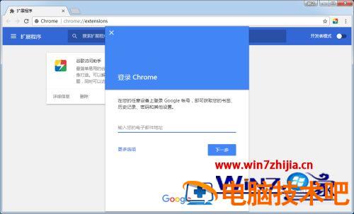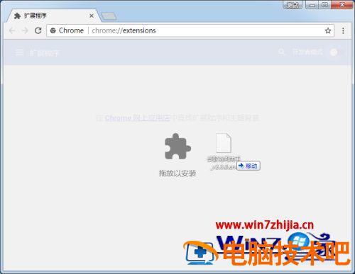 6、打开扩展程序页面后,把刚才那个crx文件用鼠标拖到浏览器的这个页面中。