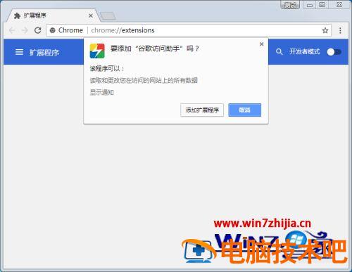 8、拖进去以后,释放鼠标时会有弹窗,按”添加扩展程序”安装。