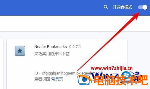 4、在打开的扩展程序页面中,我们点击右上角的“开发者模式”后面的开关,把其设置为打开状态。