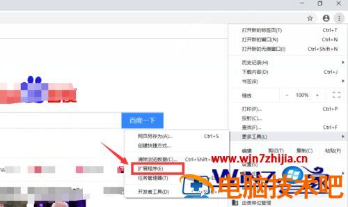 2、在菜单中,进入【更多工具】-【扩展程序】这一栏。
