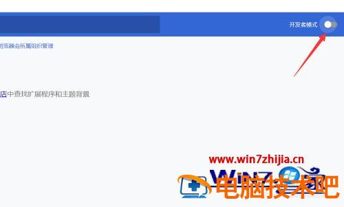 4、在扩展程序页面右上角,开启【开发者模式】。