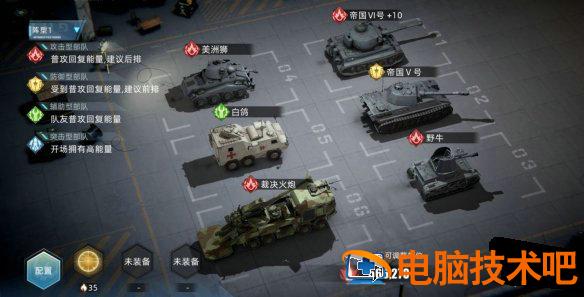 帝国Ⅴ号则是队伍中仅有的承伤角色,它的被动技能【掩护友军】和【反击怒火】都能很好的保护己方部队;美洲狮则可以补足一些伤害,主动技能【远程炮击】对地方后排造成AOE穿甲伤害,并带有一定的减能效果。