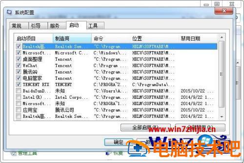 3、在选项卡中,将其切换到启动。可以根据你自己的电脑的情况在这里勾选或取消是否需要开启启动,然后点击确定。