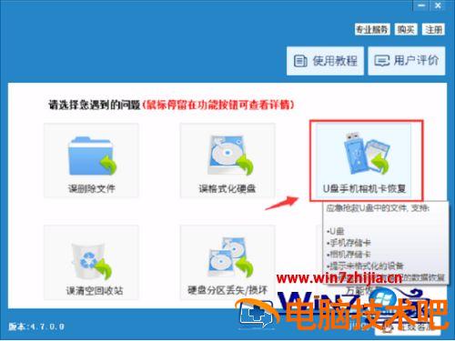 2、接下来我们运行恢复软件,软件打开以后,点击界面里的“U盘手机相机卡恢复”选项。