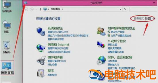 1、选择控制面板,然后用鼠标点击右上角的类别;