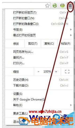 2、这时说明需要调整Chrome中对网页编码识别的设置。点击Chrome浏览器右上角的选项图标按钮。并点击下方的“更多工具”。