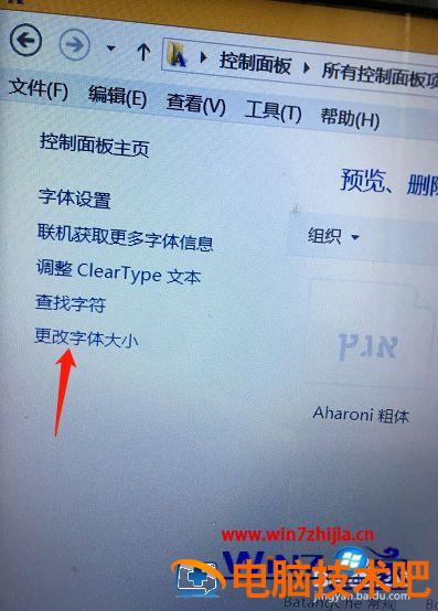 4、就可以开始设置字体了,我们主要是想调节字体的大小,所以要选择更改字体大小来调整。