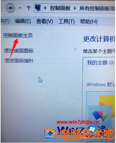 2、进入了个性化设置后,可以看到左上角有个控制面板主页,点击进去。也可以从开始-控制面板里面进去,都是一样的。