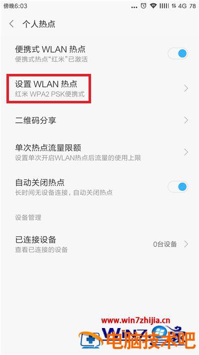 4、接下来需要设置手机热点,点击【设置WLAN热点】。