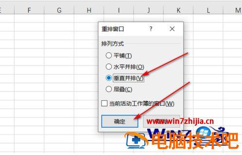 5、然后在弹出的选择框里,选择【垂直并排】,最后点击【确定】按钮。
