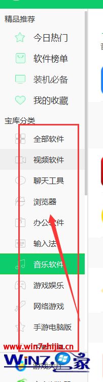 4、在宝库页面里的左侧选择“浏览器”选项;