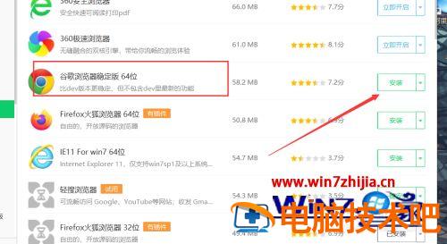 5、然后在右侧会显示软件,找到谷歌浏览器稳定版,点击安装即可;