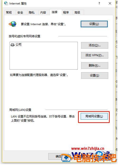 4、在打开的“Internet属性”面板,点击“局域网设置”。