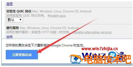 6、设置完成后,点击下面的“立即重新启动”按钮,重新启动后,chrome浏览器就可以使用平滑滚动功能了。