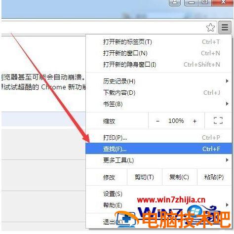 3、由于chrome浏览器的设置项比较多,我们点击右侧的“设置”按钮,然后在弹出的菜单中点击“查找”菜单。