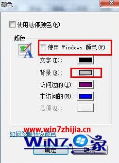 3、在打开的颜色窗口中取消“使用windows颜色”前面的勾选,点击下面背景的颜色方框。