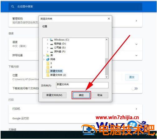 6、我们点击【位置】选项后面的【更改】按钮,系统打开选择对话框,选择需要下载的文件夹,然后点击确定,这样,我们就把chrome浏览器默认的下载位置变更了。