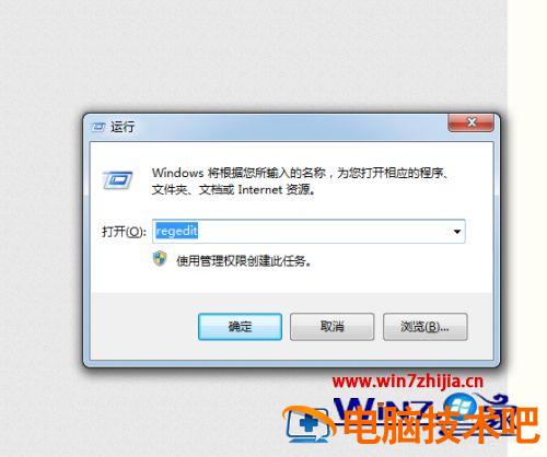4、现在点击win+r或者点击开始里面的运行,输入regedit。