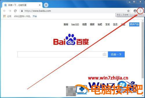 2、点击一下右上角竖着排列的三点图标。(“自定义及控制 Google Chrome”按钮)