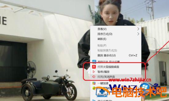 5、鼠标右键点击桌面,就可以选择暂停或者播放了。