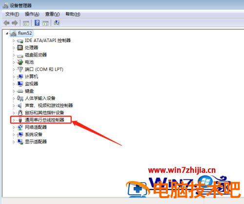 3、在上图中用鼠标左键点击设备管理器标签,进入下面图一所示的设备管理器界面,默认是显示各大类配置情况,找到通用串行总线控制器按钮,鼠标左键在其上面点击,展开具体项目。