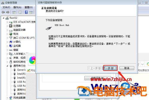 6、根据系统提示操作下一步,接着往下走,点击完成,这样就成功的启动USB接口了。
