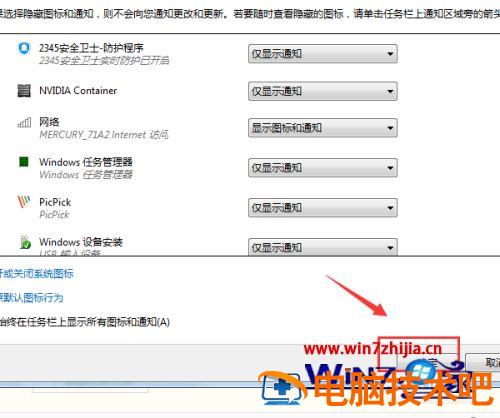 3、进入选择在任务栏上出现的图标和通知,网络选择显示图标和通知;