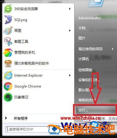 1、在Windows系统电脑上,选择打开左下角【开始】菜单选项,在打开的【开始】菜单列表中选择打开【运行】菜单选项。
