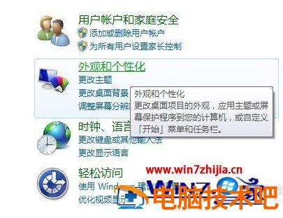 2、点击控制面板下的硬件和声音,或者点击外观和个性化都可以: