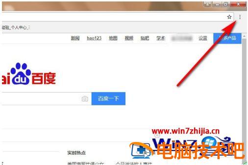2、打开进入到浏览器主页面后我们看右上角有三个小点的图标,如下图所示;点击打开。