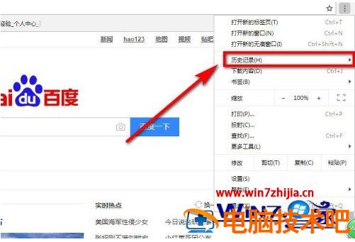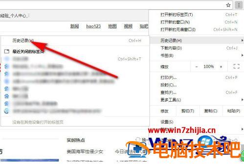 4、这时就出现了我们刚才浏览的历史记录,点击第一个“历史记录”的选项,如下图所示,其实我们还可以按“Ctrl+H”键来实现。
