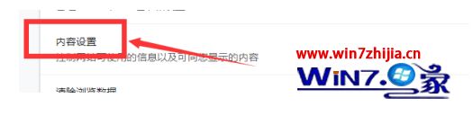 4、打开高级设置界面后我们还是往下滚动鼠标找到内容设置,内容设置是管理网页加载需要的插件等。