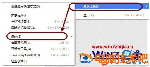 2、这时说明需要调整Chrome中对网页编码识别的设置。点击Chrome浏览器右上角的选项图标按钮。并点击下方的“更多工具”。