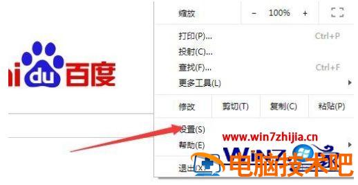 2、接下来在打开的下拉菜单中,我们点击“设置”菜单项。