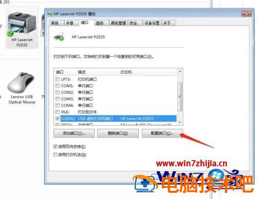 3、弹出属性窗口,我们点击“端口”菜单,再点击“配置端口”;