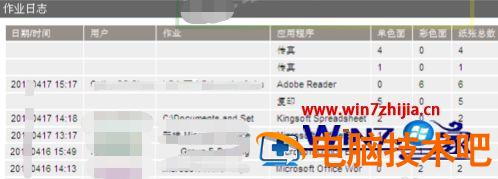 7、我们就能看到详细的打印机记录了,有打印的具体时间日期、用户、张数、是否彩色、文档名等。