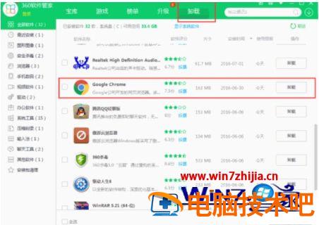 这个方法是最常见也最简单的了,我们只需打开360安全卫士自带的软件管家,在里边找到谷歌浏览器进行卸载就可以了,如下图: