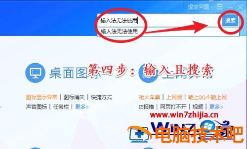 4、进入“电脑诊所”功能界面以后。在界面上的搜索栏中输入且搜索“输入法无法使用”。