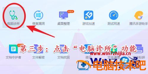 3、进入“工具箱”功能界面以后。点击界面功能列表中的“电脑诊所”功能选项。