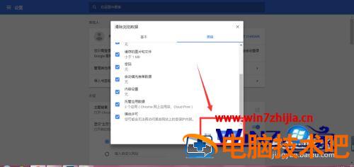 6、在高级设置中,有更多的选项设置,可以对其保存的账号密码等进行删除,选中需要删除的选项,点击清除数据。