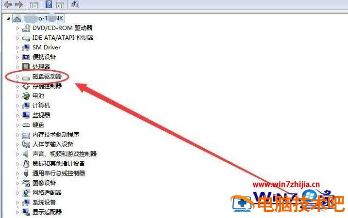 3、打开设备管理器后,将磁盘驱动器展开。