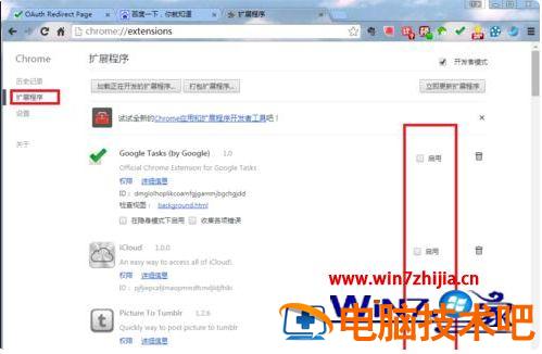 4、可以依次打开插件,并尝试打开网页,直到找出错误插件,将其关闭或删除。