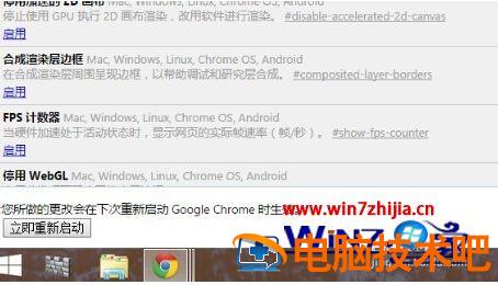 5、成功启用后下方会有您所做的更改会在下次重新启动Google Chrome时生效,如果当前你想立刻重启chrome浏览器可点击立即重新启动,或下次手动打开Chrome浏览器。