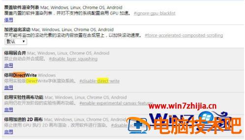3、按快捷键Ctrl+F打开搜索窗口,输入Direct,定位至停用DirectWrite:停用实验版DirectWrite字体渲染系统。