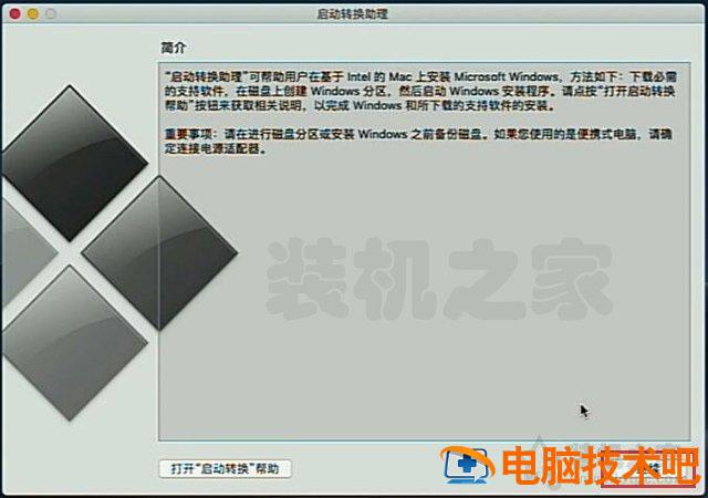 注:2015年以前的老人MAC计算机可以使用启动转换助理(BootCamp)在此过程中,会提示插入U盘,我们需要根据提示插入空U盘。