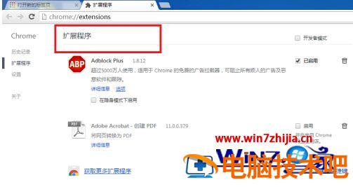 4、在自定义及控制按钮的菜单列表中,依次单击打开【更多工具】–【扩展程序】,这样就可以看到Chrome浏览器的扩展程序页面了。